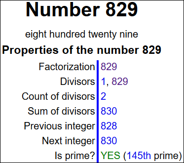 829 is the 145th prime number